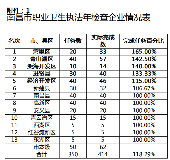 附件:1、南昌市職業(yè)衛(wèi)生執(zhí)法年檢查企業(yè)情況表