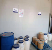 四樓原料儲存區(qū):已增加了產(chǎn)品名稱標示牌與安全周知卡 三樓罐裝車間:已劃分了擺放區(qū)域